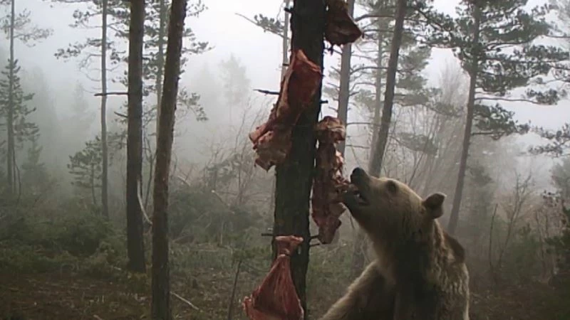 Erzurum’un Olur ilçesinde Ercan Polat isimli vatandaşın ormana yerleştirdiği fotokapana kentin yaban hayatından görüntüler yansıyor. Doğadaki hayvanları beslemek amacıyla ormanda bulunan bir ağaca yiyecek asan Polat, beslenmeye gelen yabani hayvanları da yakın bir yere kurduğu fotokapanla görüntülüyor. Polat’ın ağaca astığı yiyeceklerle karnını doyurmak için gelen bir ayı da fotokapana yansıdı. Ayının ağaçtaki yiyecekleri almaya çalışırken yaptığı hareketler ise gülümsetti.