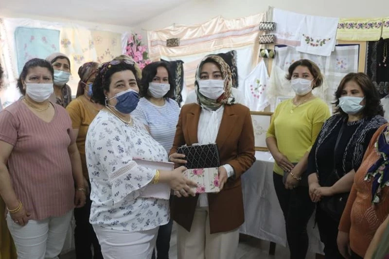Aydın’ın Karpuzlu ilçesinde ’Hayat Boyu Öğrenme Haftası’ dolayısıyla halk eğitim merkezi kurslarına katılan kadın kursiyerler ortaya çıkarttıkları eserleri yıl sonu sergisinde görücüye çıkarttı.