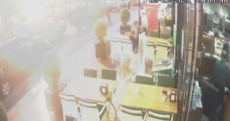 Yıldırımın düşme anı bir iş yerinin güvenlik kamerasına saniye saniye yansırken, çevredekiler ortaya çıkan sesle büyük korku ve panik yaşadı.
