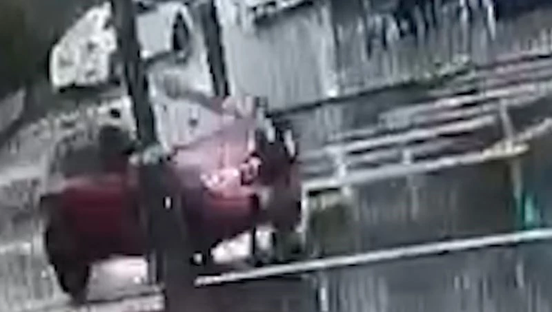 Karşıdan karşıya geçmeye çalışırken otomobil böyle çarptı