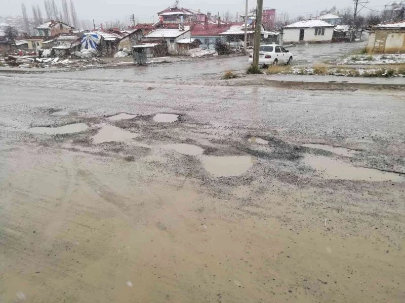 Karşıyaka Mahallesi’ndeki yol köstebek yuvasına döndü