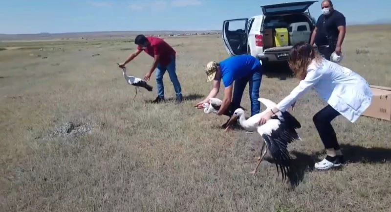 Kars’ta tedavileri tamamlanan 3 leylek ve büyüyen 3 kızıl tilki doğal ortamlarına bırakıldı.