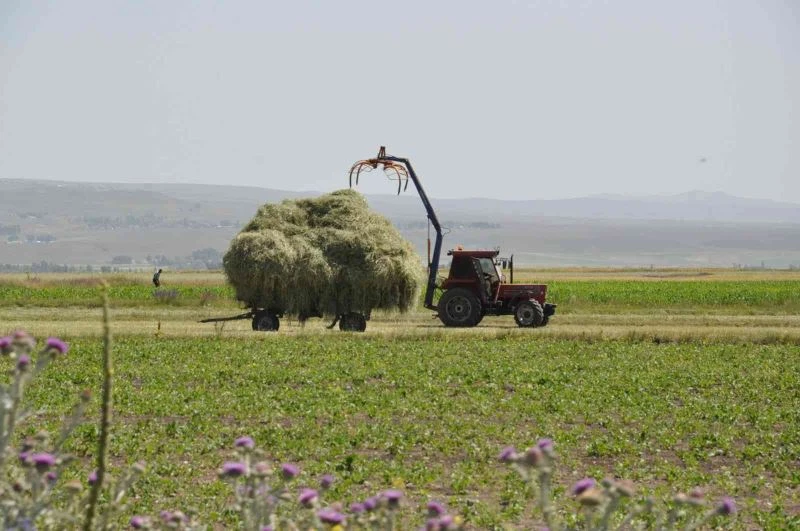 Otun bol olduğunu ifade eden çiftçiler, hayvanların kışlık ot stokunu yapmanın tatlı yorgunluğunu yaşıyor.