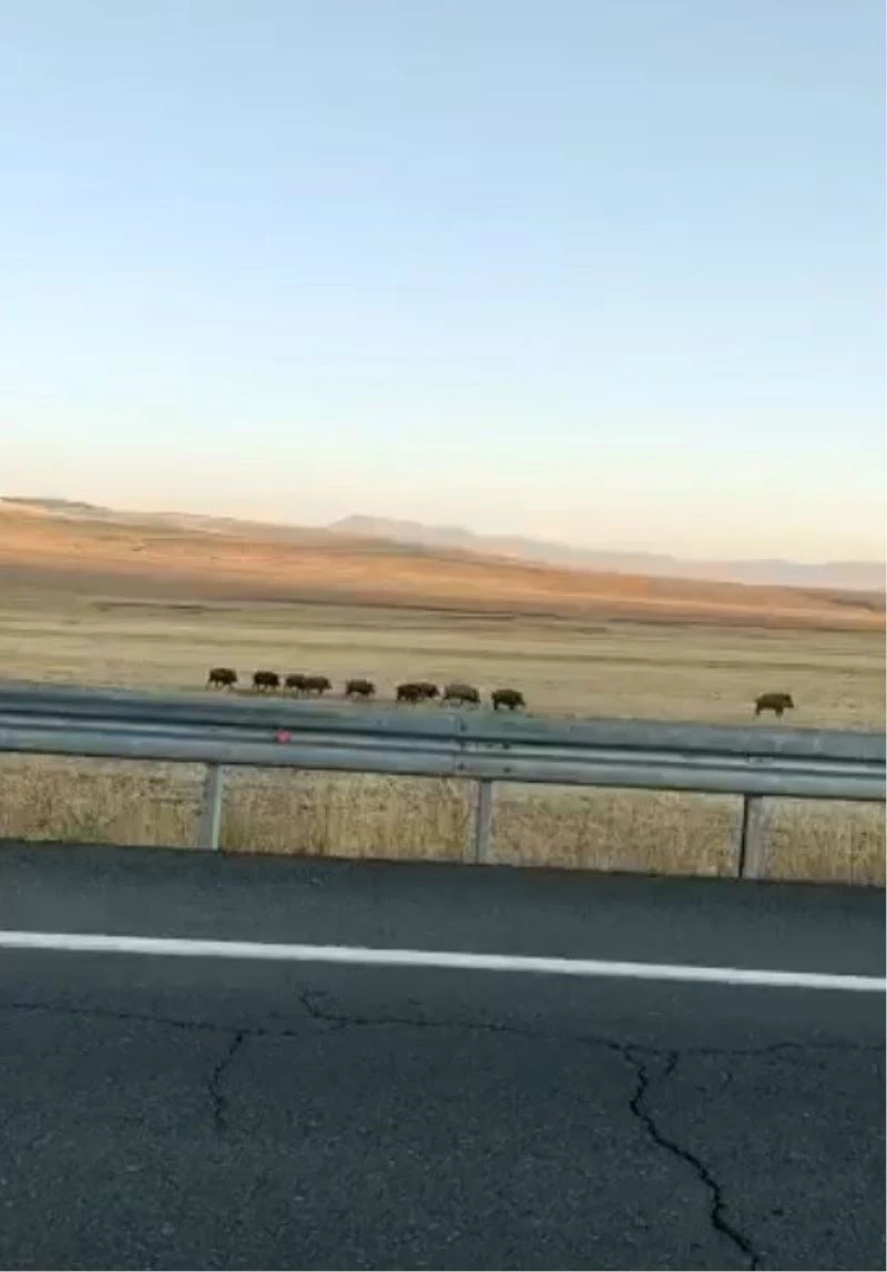 Sarıkamış-Selim karayolunda aracıyla seyir halinde bulunan Faruk Erdoğdu, yol kenarında domuz sürüsünü gördü. Cep telefonuyla o anları kaydeden Erdoğdu’yu fark eden domuzlar kaçmaya başladı. Bir süre kaçan domuzlar daha sonra gözlerden kayboldu.