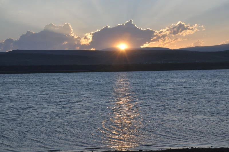 Her mevsimi bir başka güzel olan Kars, gün batımında gökyüzünün kızıla bürünerek göle yansıması fotoğraf kareleriyle ölümsüzleştirildi.