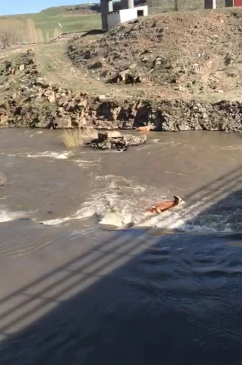 Kars’ta hayvanların azgın sularda sürüklenmesi kameralara yansıdı