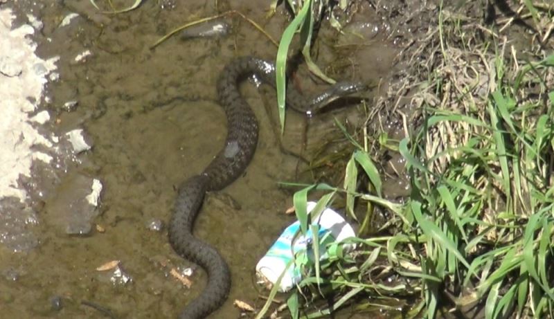 Öte yandan havaların ısınmasıyla birlikte Dereiçi Mevki Hidro Elektrik Santrali barajı önünde bulunan yeşil alandaki yılan ise dikkat çekti. İnsanlar tarafından rahatsız edilmeyen yılanların rahat hareketi ise kameralara yansıdı.