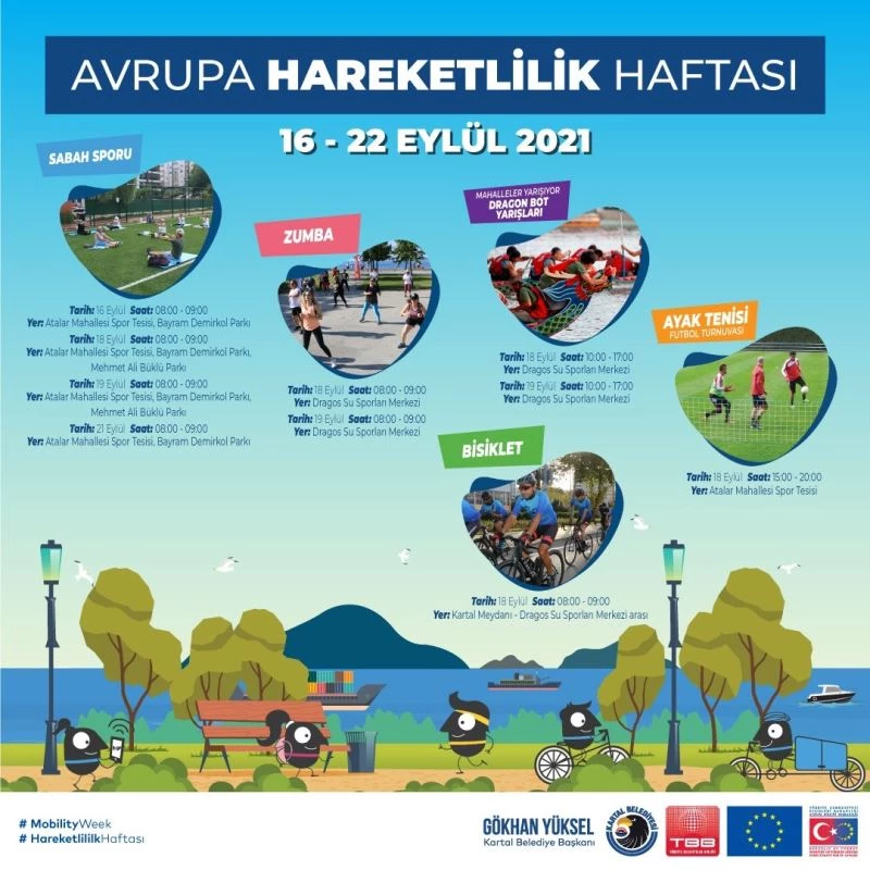 Kartal Belediyesi, Avrupa Birliği tarafından 16-22 Eylül tarihlerinde ilan edilen Avrupa Hareketlilik Haftası’nda birbirinden farklı etkinliklere ev sahipliği yapmaya hazırlanıyor.