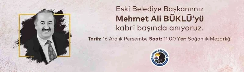 Kartal Belediyesi eski başkanlarından merhum Mehmet Ali Büklü, ölümünün 26. yılında Soğanlık Mezarlığı’ndaki kabri başında anılacak.