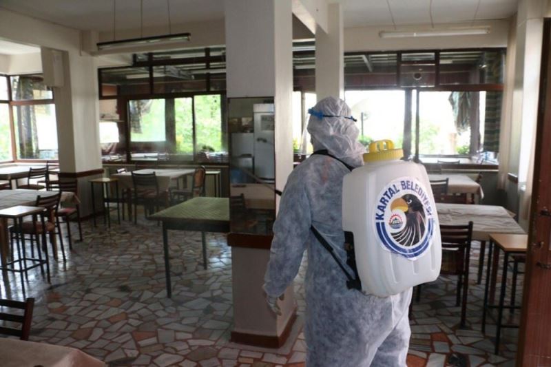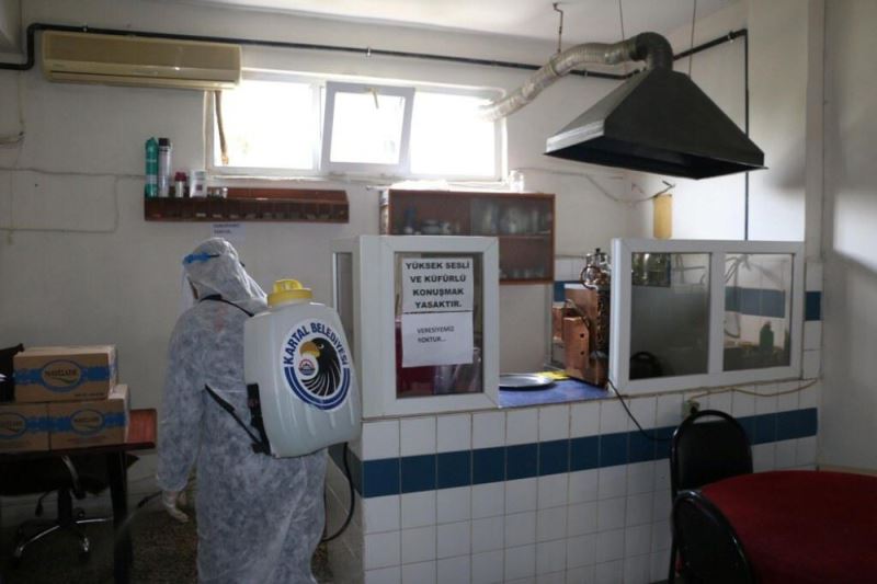 Korona virüsle mücadelede, 1 Haziran 2020 tarihi itibariyle yürürlükten kaldırılan kısıtlama kararları sonrası açılan kahvehaneler ve kıraathaneler, Kartal Belediyesi’ne bağlı ekipler tarafından özel madde kullanılarak dezenfekte edildi.