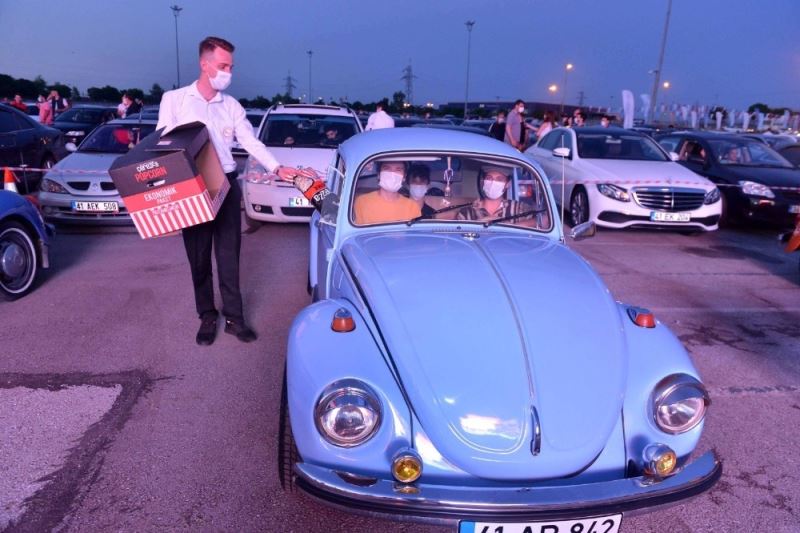Film başlamadan önce alanı dolduran yüzlerce aracın dörtlülerini yakarak korna çalması ise görsel bir şölen yaşattı. İzmit Wolswagen Kulubü Derneği’nden klasik vosvos arabalarla sinema izlemeye gelen klasik otomobil tutkunları renkli görüntülere sahne oldu.
