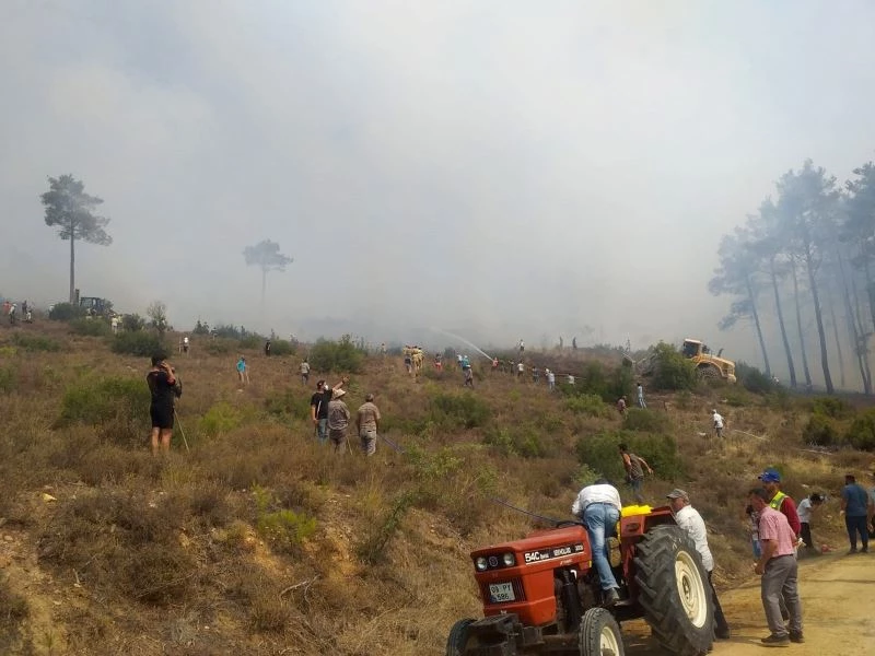 Alevlere orman ekipleri ile müdahale eden vatandaşlara havadan helikopter desteği de gelince yangın büyümeden kontrol altına alındı.