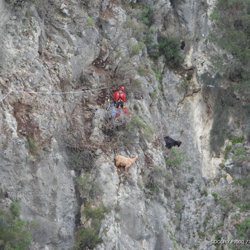 Kayalık alanda mahsur kalan keçileri AKUT kurtardı