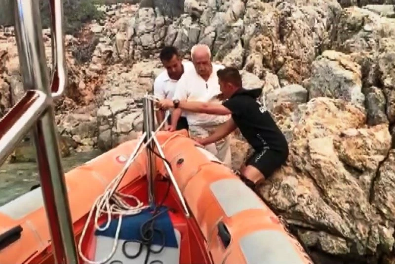 Muğla’nın Bodrum ilçesinde yangın nedeniyle kayalıklara sığınan yaşlı adamı sahil güvenlik ekipleri kurtardı.