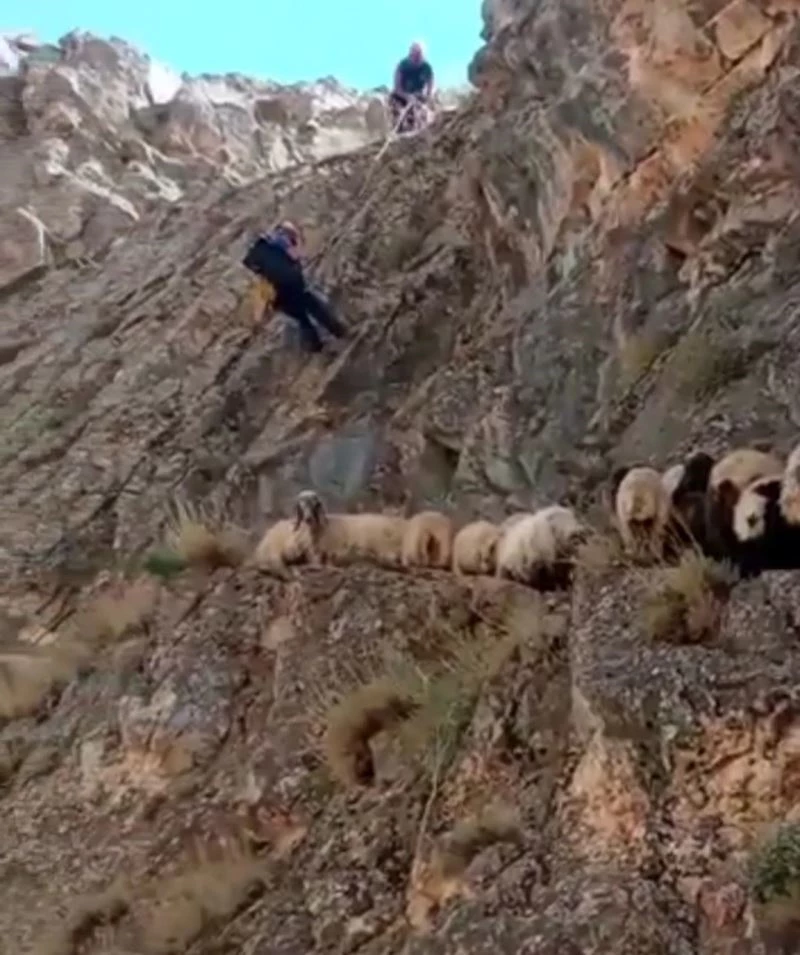 Van’ın Çatak ilçesinde kayalıkta mahsur kalan koyunlar, jandarma ve AFAD ekipleri tarafından kurtarıldı.