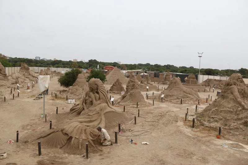 Antalya’da bu yıl 16’ncısı "Atlantis” temasıyla düzenlenecek olan Uluslararası Antalya Kum Heykel Festivali (SANDLAND) kapsamında alandaki yeni heykellerin yapımına ve eski heykellerin restorasyonuna başlandı. 10 bin metrekarelik alanda, 10 bin ton nehir kumu kullanılarak tamamlanma aşamasına gelinen çalışmalarda, Atlantis teması ışığında 8 yeni heykel yapılacak. Pandemi nedeniyle gelemeyen sanatçılar, çalışmalarını sezon boyunca ziyaretçilere canlı olarak gösterecek. Ziyaretçiler hem yapılan heykelleri görecek hem de yapım aşamasındaki heykel çalışmalarını izleme şansına sahip olacak. Festivalin mayıs ayının ortalarına doğru açılması planlanıyor.