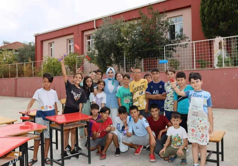 Aydın’ın Karacasu ilçesinde öğrenciler, Kaymakam Hatice Gamze Kuran’ın da katıldığı bir etkinlikte okul sıralarını boyayarak yeniledi.