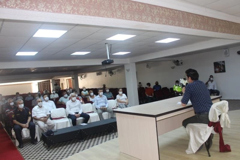 Toplantıya, Kaymakam Arif Yalçın’ın yanı sıra Belediye Başkanı Mustafa Çetinkaya, Bozyazı Emniyet Müdürü Mehmet Güngör, İlçe Jandarma Komutan Vekili Abdullah Çelebi, Toplum Sağlığı Merkezi Başkanı Dr. Şerife Örtürk ve site yöneticileri katıldı. Bozyazı Müftülüğü Konferans Salonunda gerçekleştirilen toplantıda Kaymakam Yalçın, yaz mevsiminden ve hava sıcaklığının artmasından dolayı ilçeye başka illerden yazlıkçıların ve misafirlerin gelişinde artış olduğunu, başka illerden Bozyazıya gelen vatandaşların mutlaka site yöneticileri tarafından emniyet veya jandarmaya güçlerine bildirilmesinin önemli olduğunu söyledi.