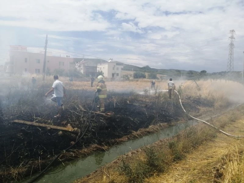 Yenibağarası Mahallesi’nde yerleşim yerlerine çok yakın olan ve buğday hasadının bir gün önce yapıldığı tarlada yangın çıktı. Tarla bitişiğindeki bir bina önünde yapılan kaynak çalışması sırasında sıçrayan kıvılcımlar kuru buğday sapları ve samanları tutuşturdu. Rüzgarında etkisiyle alevler bir anda tarlayı sardı. Görenlerin haber vermesiyle İzmir Büyükşehir Belediyesi Bağarası İtfaiye Grubu ekibi kısa sürede yanan alana geldi. İş makinelerinin desteği ve vatandaşların da yardımıyla yangın hasat edilmemiş buğday tarlalarına sıçramadan yarım saatte kontrol altına alındı. Vatandaşlar bölgede tarım alanlarıyla yerleşim birimlerinin içi içe geçtiğini, çıkan küçük anız yangınlarının bile evleri tehdit etmeye başladığını söyledi.