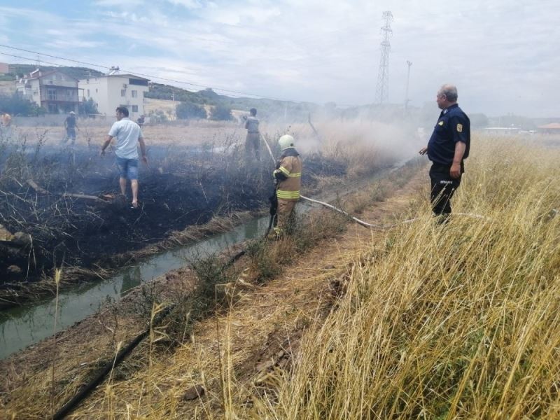 İzmir’in Foça ilçesine bağlı kırsal Yenibağarası Mahallesi’nde çıkan yangında 5 dönüm anız tarlası kül oldu. Kaynak yapılırken kıvılcımların sıçramasıyla başlayan yangın bitişikteki hasat edilmemiş buğdaylara sıçramadan söndürüldü.