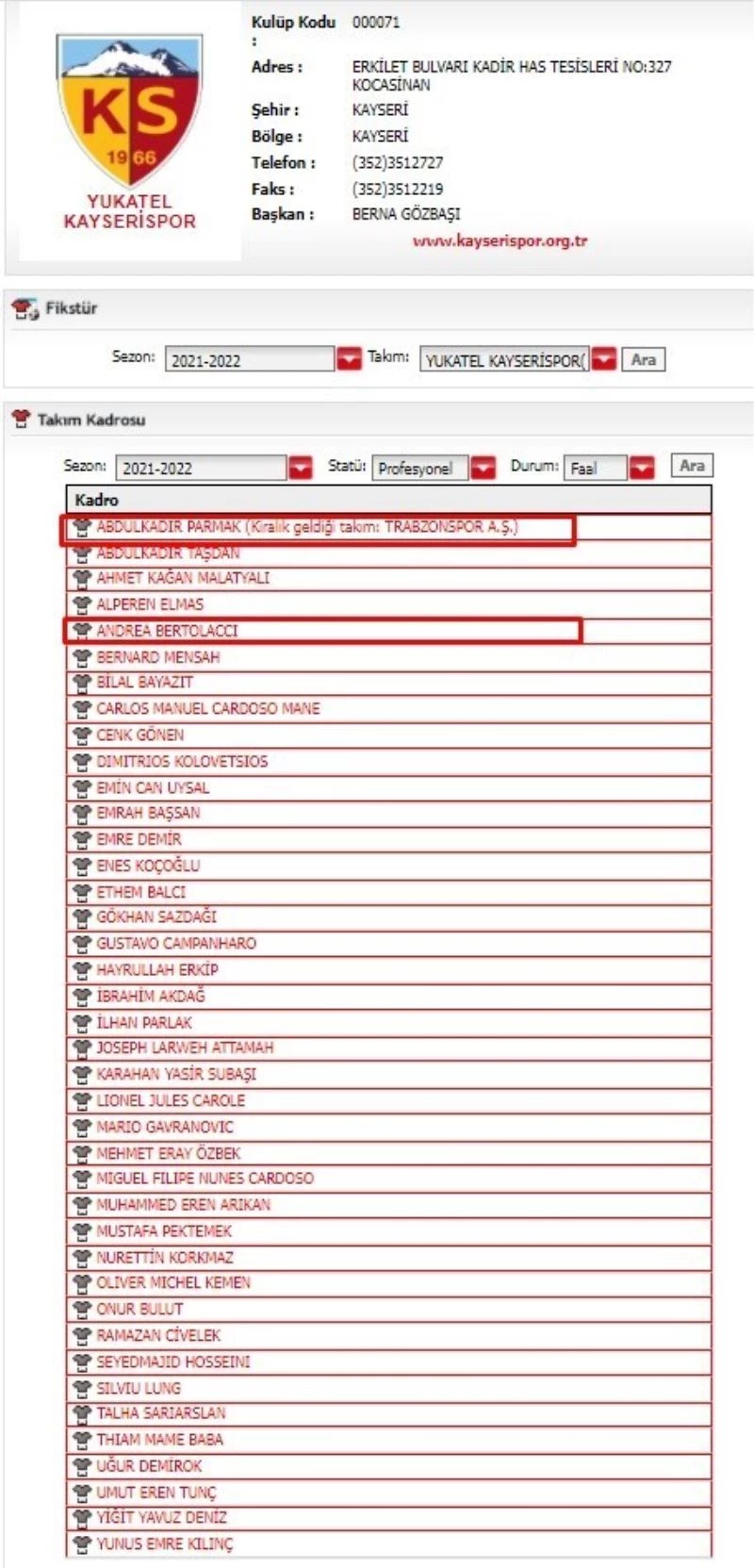 Süper Lig’de ligin 21.haftasında yarın deplasmanda Adana Demirspor’a konuk olacak Yukatel Kayserispor’da kadrosuna kattığı Abdulkadir Parmak ve Andrea Bertolacci’nin lisanlarını çıkarttı. 2 futbolcu yarın oynanacak olan Adana Demirspor maçında forma giyemeyecekler.