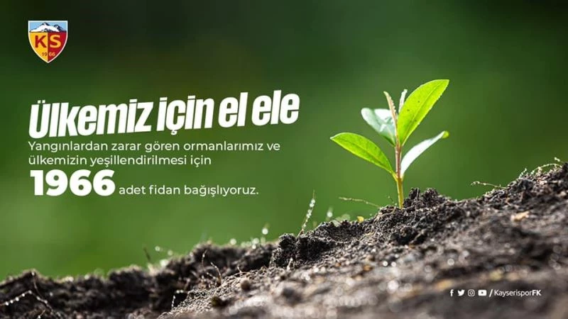 Yukatel Kayserispor’dan yapılan açıklamada, "Türkiye Futbol Federasyonu’nun başlattığı bu proje ile yangınlardan zarar gören ormanlarımız ve ülkemizin yeşillendirilmesi için 1966 fidan da bizden" cümleleri kuruldu.