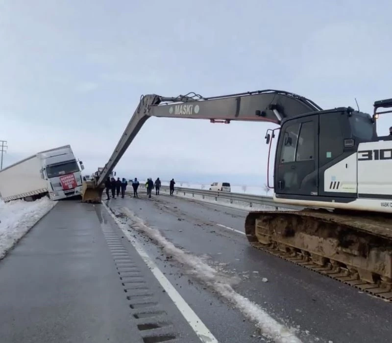 Deprem bölgesinde arama kurtarma çalışmalarına katılan Manisa Büyükşehir Belediyesi ve MASKİ Genel Müdürlüğü ekipleri, olumsuz hava şartları nedeniyle Konya’da yoldan çıkan ayni yardım tırını da kurtararak yoluna devam etmesini sağladı.