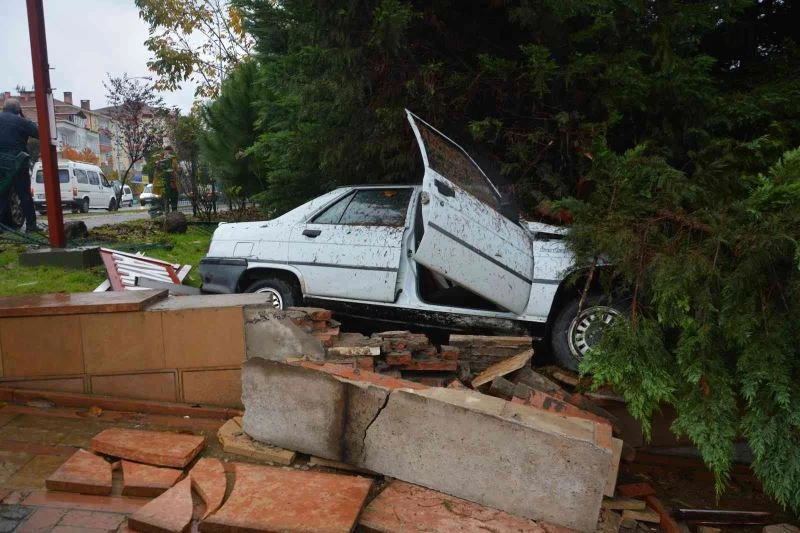 Kaza yapmamak için direksiyonu kırınca bahçeye girdi