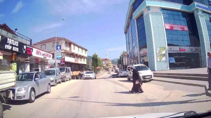 Düzce’de 3 farklı noktada meydana gelmesi muhtemel kazalardan vatandaşlar kıl payı kurtuldu. Düzce’nin Cumayeri ilçesinde güzergahında seyir halinde olan otomobil önüne bir anda atlayan yaşlı kadın sürücünün ani fireni ile dururken yaşlı kadın hiçbir şey olmamış gibi karşıdan karşıya geçmesi dikkatlerden kaçmadı.
