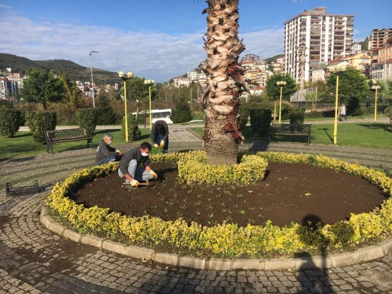 Kdz. Ereğli Belediyesi Temizlik İşleri Müdürlüğü Park ve Bahçeler Birimi, 400 bin kış mevsimi çiçeğini toprakla buluşturdu. Kdz. Ereğli Belediyesi ekipleri, kış mevsimine uygun 400 bin fideyi parklara, yeşil alanlara dikti. Korona virüs salgınıyla mücadelenin sürdüğü dönemde, Belediye Temizlik İşleri Müdürlüğü Park ve Bahçeler Birimi de kenti güzelleştirmek için çalışmalarını sürdürüyor. Belediyenin kendi serasında üretilen 300 bin fide ile temin edilen 100 bin çiçek yeşil alanlara, sahil bandına, refüjlere, park alanlarına dikildi. Hercai menekşe, çuha, nergis, şeker tabağı ve koyun gözü gibi çiçeklerin fideleri, soğanları toprakla buluştu; zamanı gelenler açmaya başladı. Şehir rengarenk bir görüntüye büründü. Ekipler, Yeşiltepe Cevizler Kavşağı, Devrek yol ayrımı kavşağı ve Kışla kavşağında çevre düzenleme ve çiçek dikimi çalışmalarına devam ediyor.
