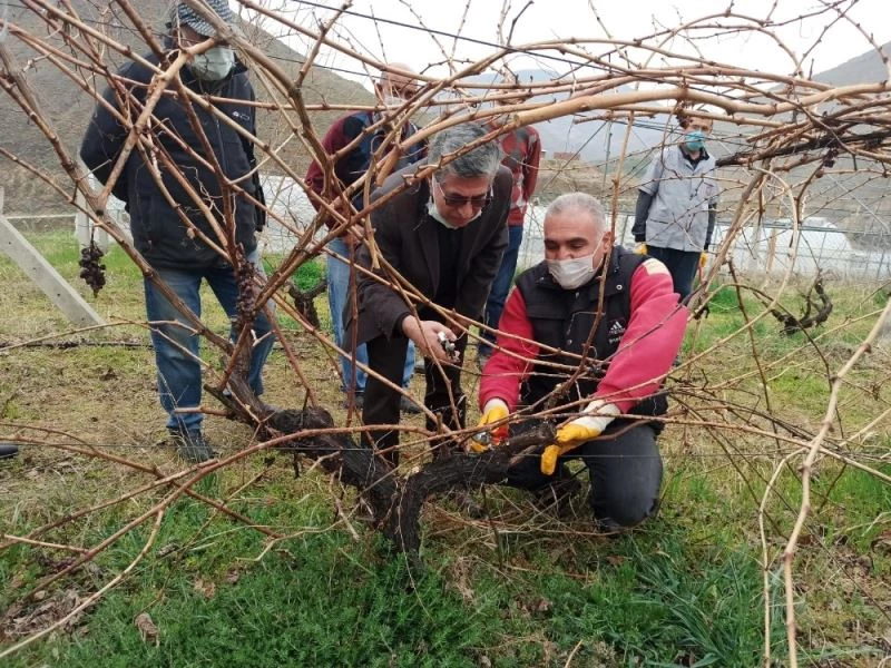 Elazığ’ın Keban ilçesinde çiftçilere uygulamayı bağ budama eğitimi verildi.