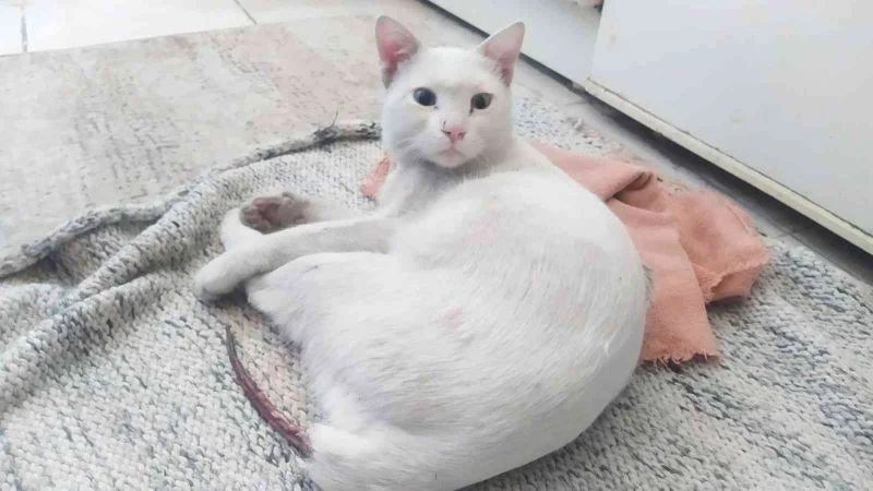 Gece saatlerinde kimliği belirsiz kişi veya kişilerce kuyruğuna çelik tel takılarak demir korkuluklara bağlanan "Mestan" isimli kedi, çelik telden kurtulmak isterken kuyruğu sıyrıldı.