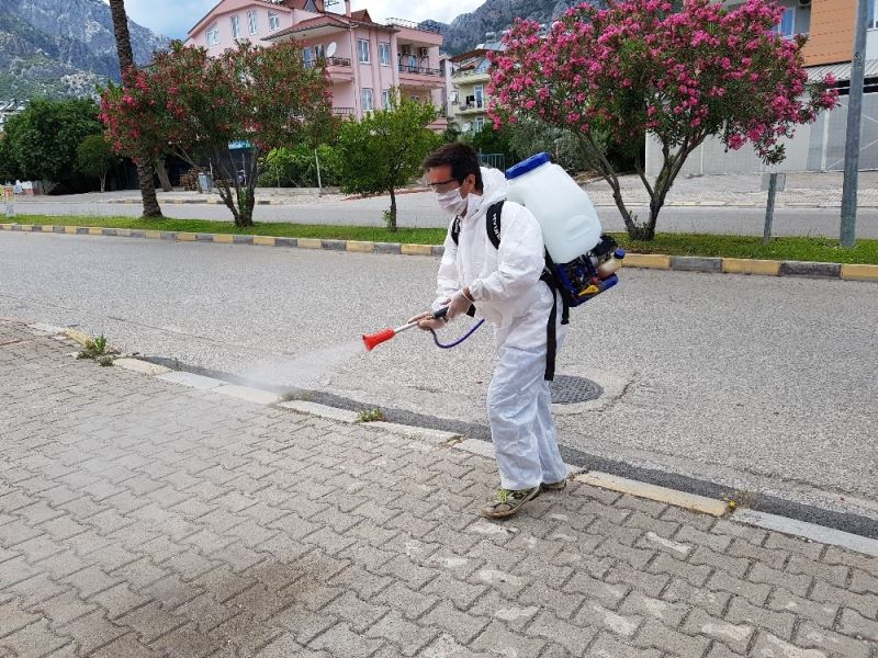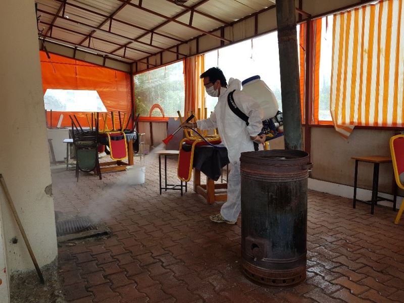 Kemer Belediyesi Park ve Bahçeler Müdürlüğü ekipleri, Kemer’de resmi kurumlar, camiler, park ve bahçeler, otobüsler, duraklar ve yollardan sonra kahvehaneler de dezenfekte işlemi gerçekleştirdi.