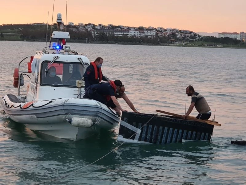 Balıkesir’in Ayvalık ilçesinde inşaatta çalışan iki kafadar kendi yaptıkları ahşap sal ile denize açıldıktan sonra mahsur kaldı. Akıntıya kapılan iki kafadarı Sahil Güvenlik kurtardı.