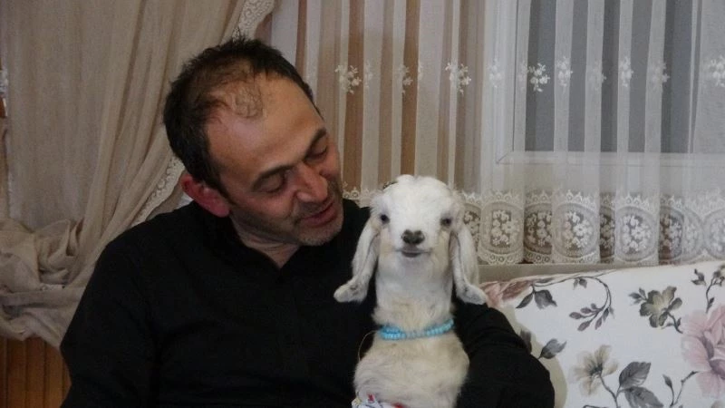Rize’de yaşayan temizlik görevlisi Erhan Taşpınar kendisine hediye edilen oğlağı evinde evladı gibi bakıyor.