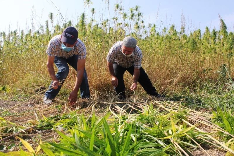 Mart ayında ekilen kenevirin boyunun yaklaşık 6 metreye ulaşması ile birlikte hasadı yapılmaya başladı.