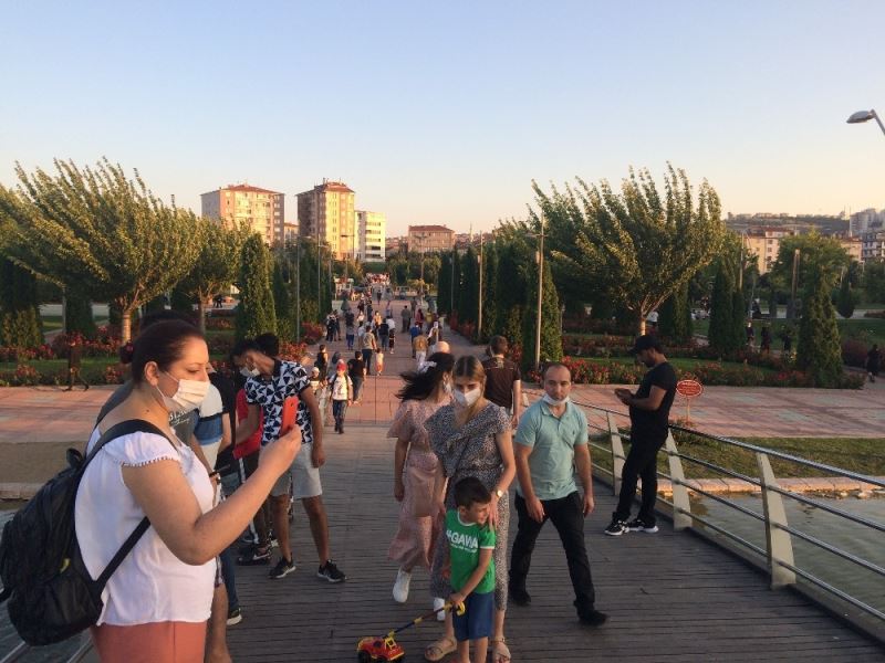 Kentpark’ı dolduran ziyaretçiler korona virüs (Covid-19) kapsamında maske takma zorunluluğuna dikkat etse de, bazı vatandaşların sosyal mesafe kurallarına uymadıkları gözlemleniyor.