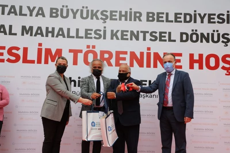 Türkiye’nin en büyük kentsel dönüşüm projesi Antalya Büyükşehir Belediyesi Kepez-Santral Mahalleleri Kentsel Dönüşüm Projesi’nde ikinci anahtar teslim töreni gerçekleştirildi. Yapımı tamamlanan 472 daire daha hak sahiplerine teslim edildi. Pandemi nedeniyle sınırlı katılımcı ile gerçekleştirilen törene Büyükşehir Belediye Başkanı Muhittin Böcek, online olarak katıldı. Törende, sembolik olarak 9 hak sahibine evlerinin anahtarları Büyükşehir Belediyesi Genel Sekreteri Cansel Tuncer ve Büyükşehir Belediyesi Başkan Başdanışmanı ve ANTEPE Yönetim Kurulu Başkanı Cem Oğuz tarafından verildi. Evlerine kavuşan hak sahipleri büyük mutluluk yaşadı.