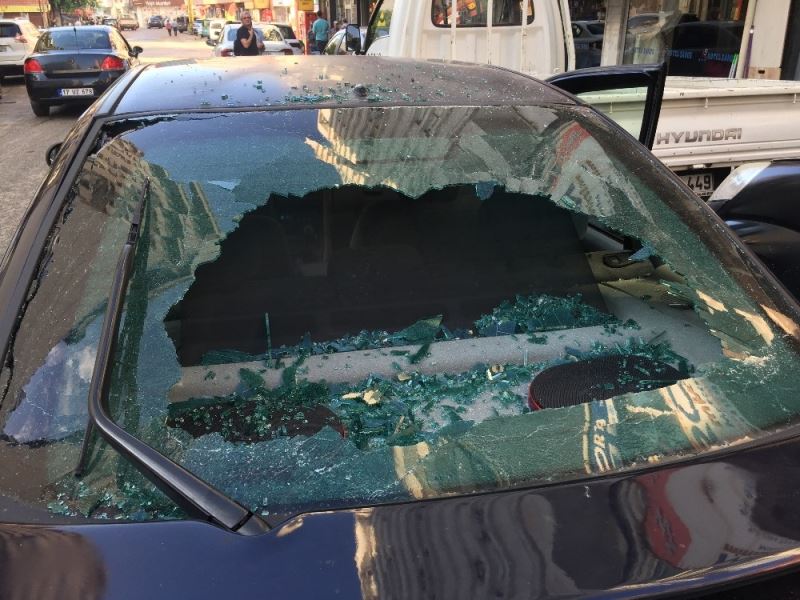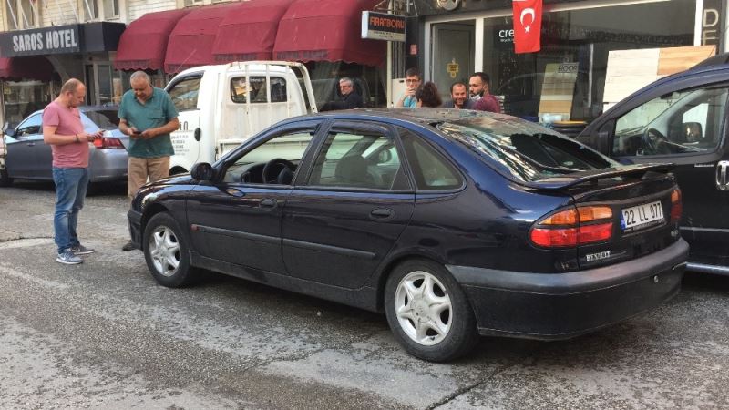 Edirne’nin Keşan ilçesinde şiddetli yağmur ve doluda bir binanın gevşeyen sıvası koparak park halindeki aracın üzerine düştü.