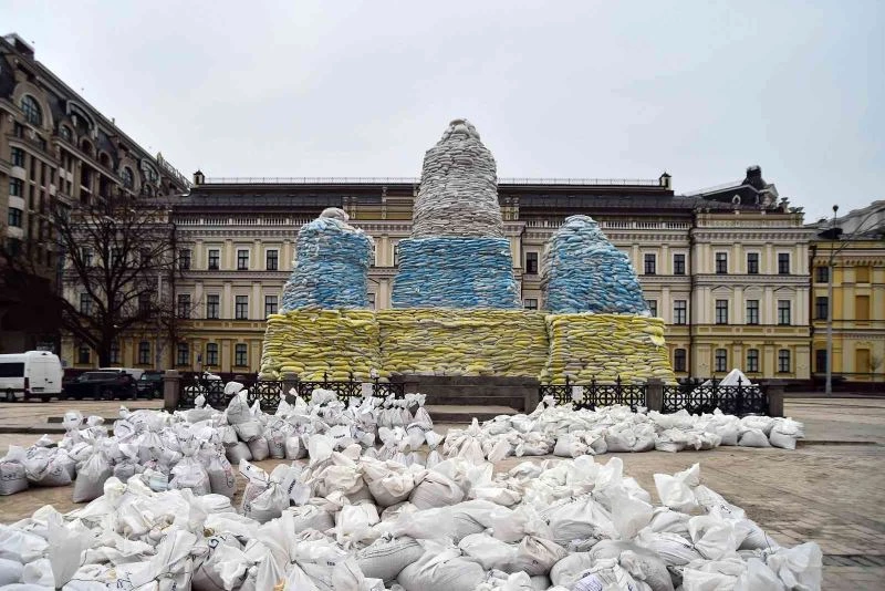 Rus ordusunun işgal ettiği Ukrayna’daki bölgelerde tedbir alınmaya devam ediliyor. Ukrayna’nın başkenti Kiev’de Mikhailovsky Meydanı’nda bulunan Kiev Prensesi Olga’nın heykeli de saldırılar nedeniyle korumaya alındı. Heykelin etrafı önce brandalarla, daha sonra da Kiev halkı tarafından kum torbalarıyla kapatıldı.