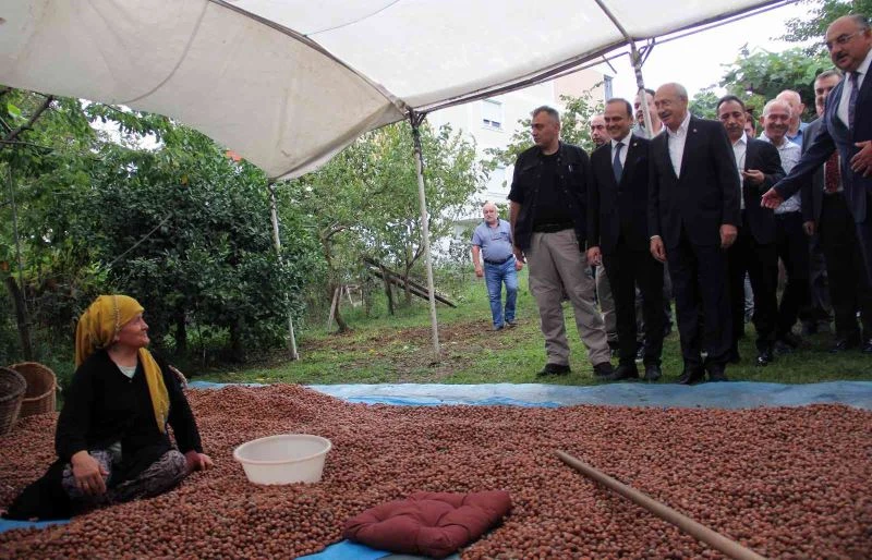 Partisinin grup toplantısı ve bir dizi ziyaretler için Giresun’a gelen Cumhuriyet Halk Partisi (CHP) Genel Başkanı Kemal Kılıçdaroğlu, fındık harmanında üreticilerle buluştu.