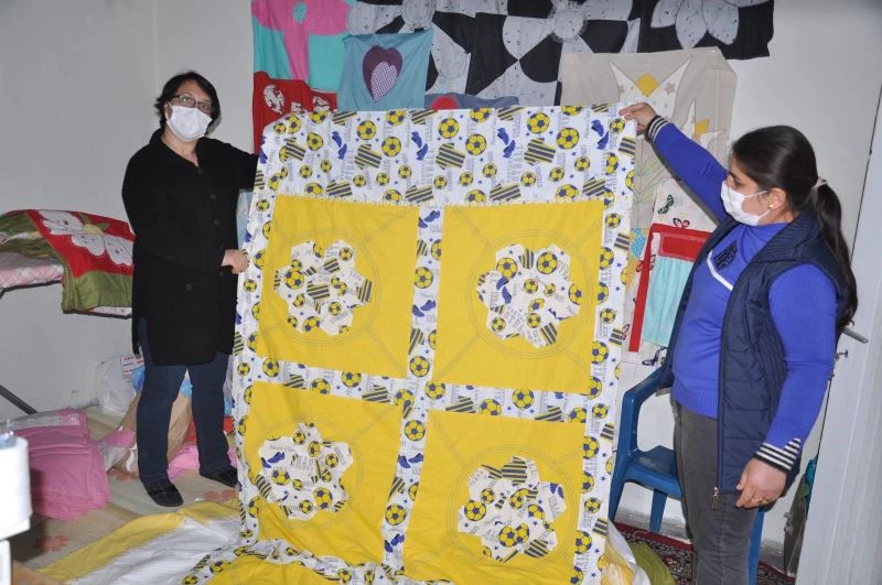 Aldıkları eğitimin sadece Halk Eğitim Merkezinde kalmasını istemeyen kadınlar, “12 olarak halk eğitim kursunu tamamladık. Bir ev tuttuk iki odalı burayı atölye çevirdik. Burada ev tekstili üzerine çaydanlık örtüsü, mutfak önlüğü, gelinlik kızlar için yastık, yorgan örtüsü, çarşaf dikerek bunları sosyal medya sayfasından satışa sunduk. Bu yayını izleyen tüm herkesi sipariş vermeye davet ediyoruz” dedi.