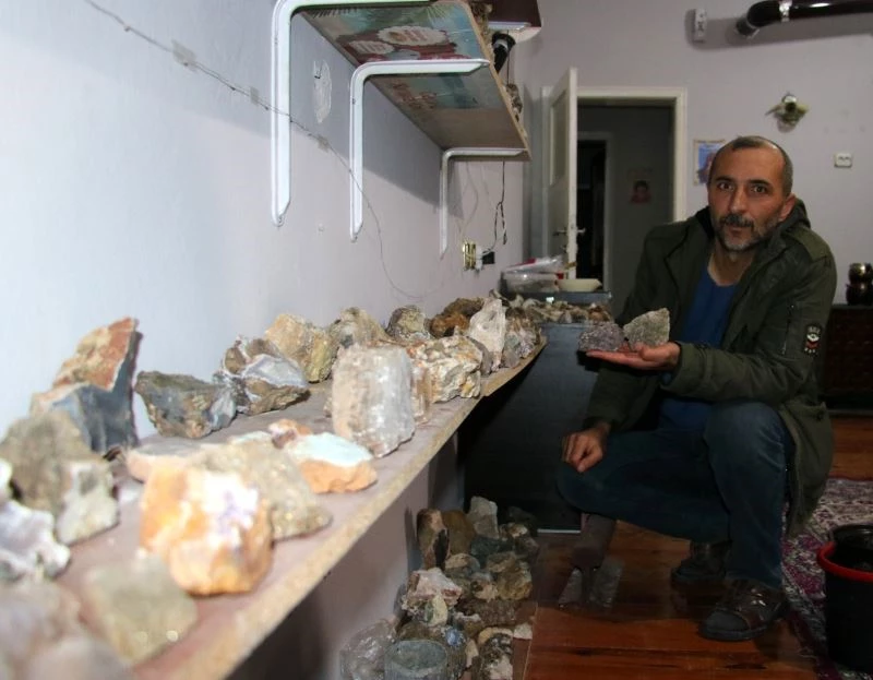 Sivas’ta yaşayan Yıldıray Aluç, doğal taşlara merakından dolayı 40 yaşında Gümüşhane Üniversitesi jeoloji Mühendisliği’nden mezunu oldu, kiraya vermediği evini adeta taş müzesine dönüştürdü.