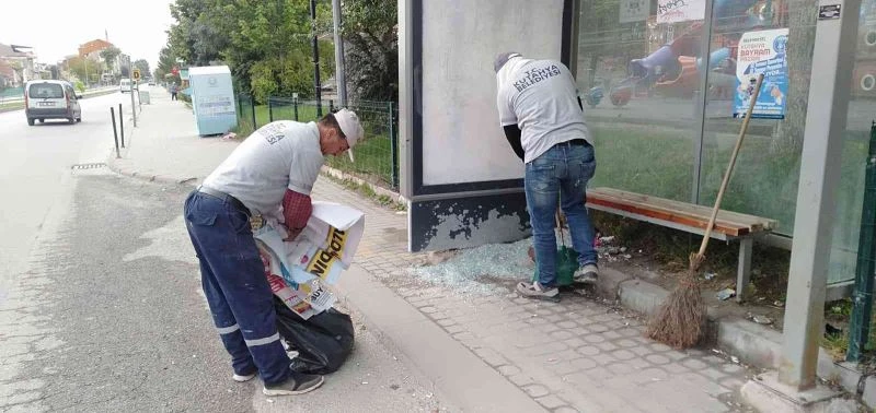 Mahallelerde bulunan durakların camekan kısmının kırılması sonrasında ekiplerimiz duraktaki cam kırıklarının temizliğini tamamladı. Temizlik sonrasında ekipler kırılan camekan kısmı yenisi ile değiştirdi.