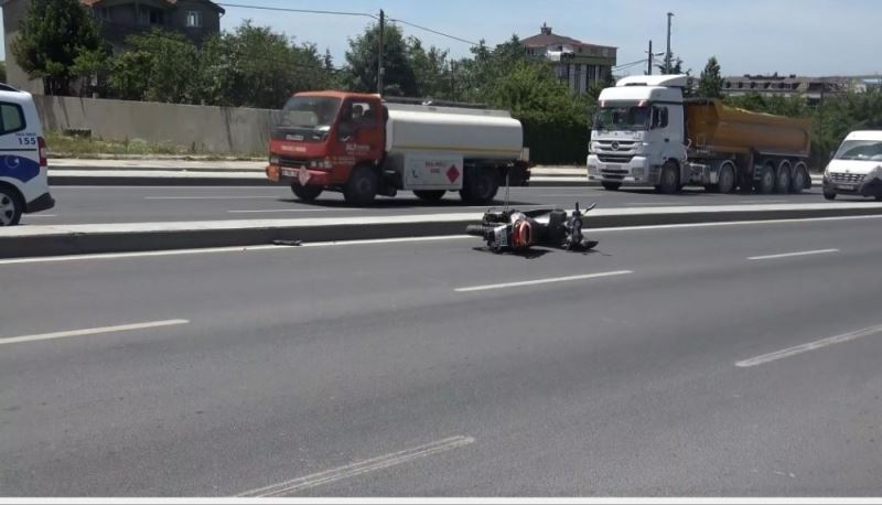 Arnavutköy – Haraççı çevre yolunda kırmızı ışığın yandığını fark etmeyen otomobil sürücüsü, 64 yaşındaki motosikletliye çarptı.
