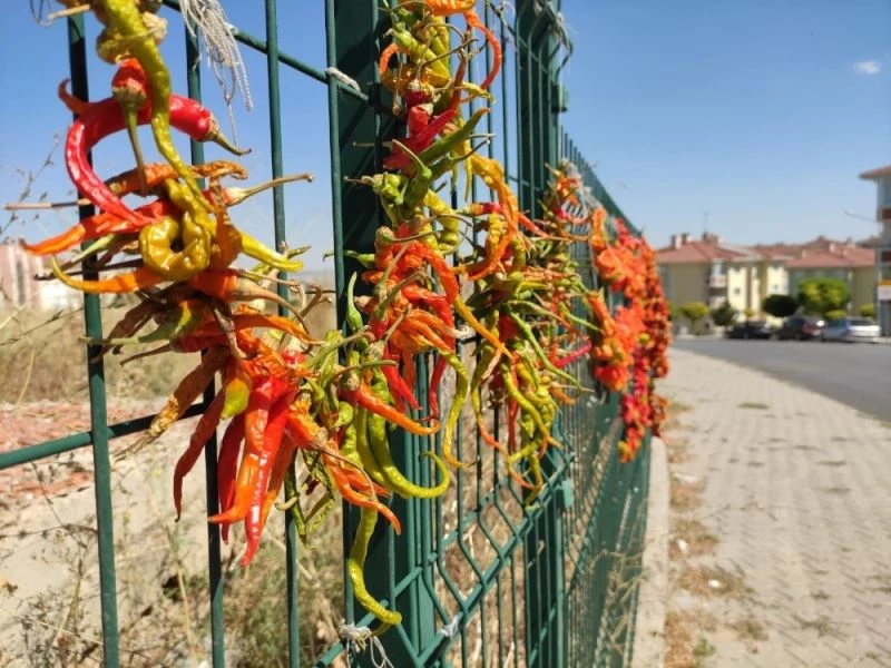 Eskişehir’de kış aylarında tüketilmek üzere kurutulan biberler, yol kenarlarında bulunan demir çitlere asıldı.