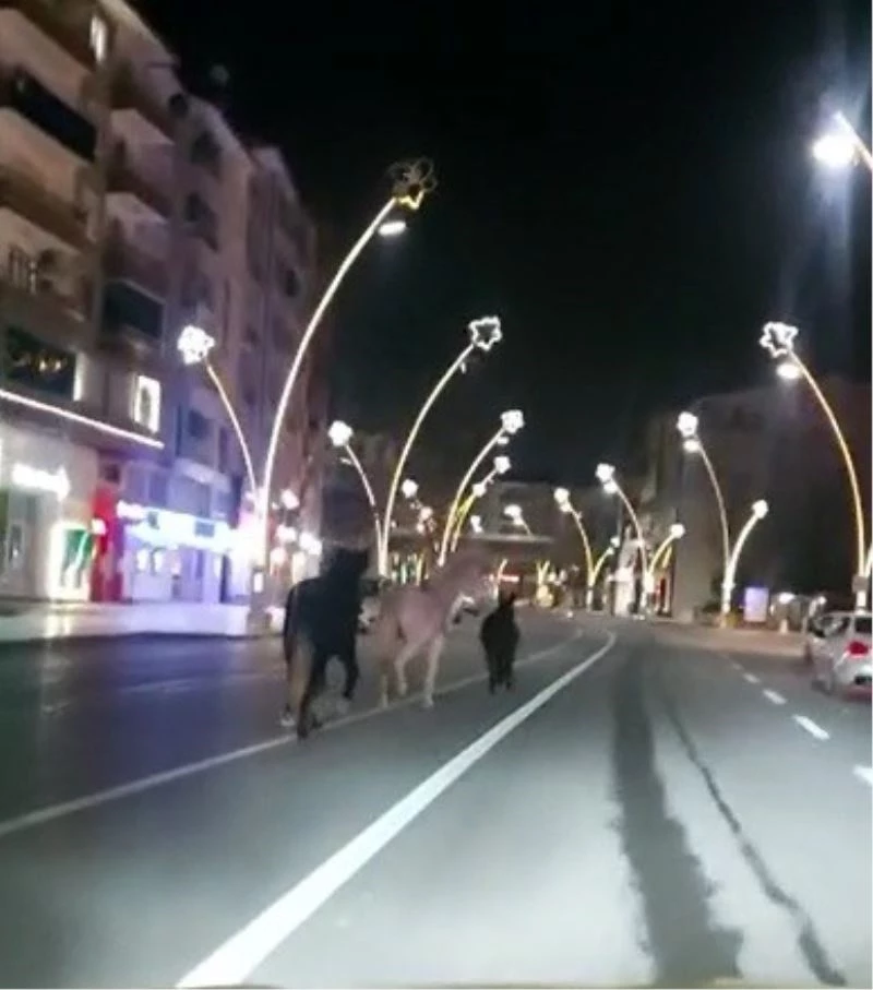 Tokat’ta sokağa çıkma kısıtlaması dolayısı ile boşalan caddeler başıboş atlarla eşeğe kaldı.
