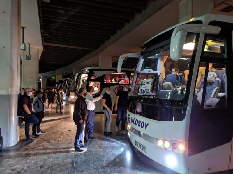 Korona virüs salgını tedbirleri kapsamında uygulanan seyahat kısıtlamasının sona ermesinin ardından İzmir Şehirler arası Otobüs Terminali’nde hareketlilik başladı.