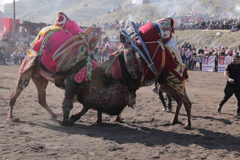 Kıyasıya mücadele eden pehlivan develer arenayı ısıttı