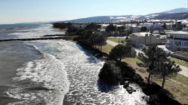 Karadeniz, Samsun’un batı sahilinde hırçın dalgaları ile karadan kum yemeye devam ediyor.